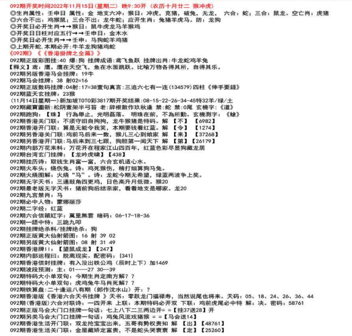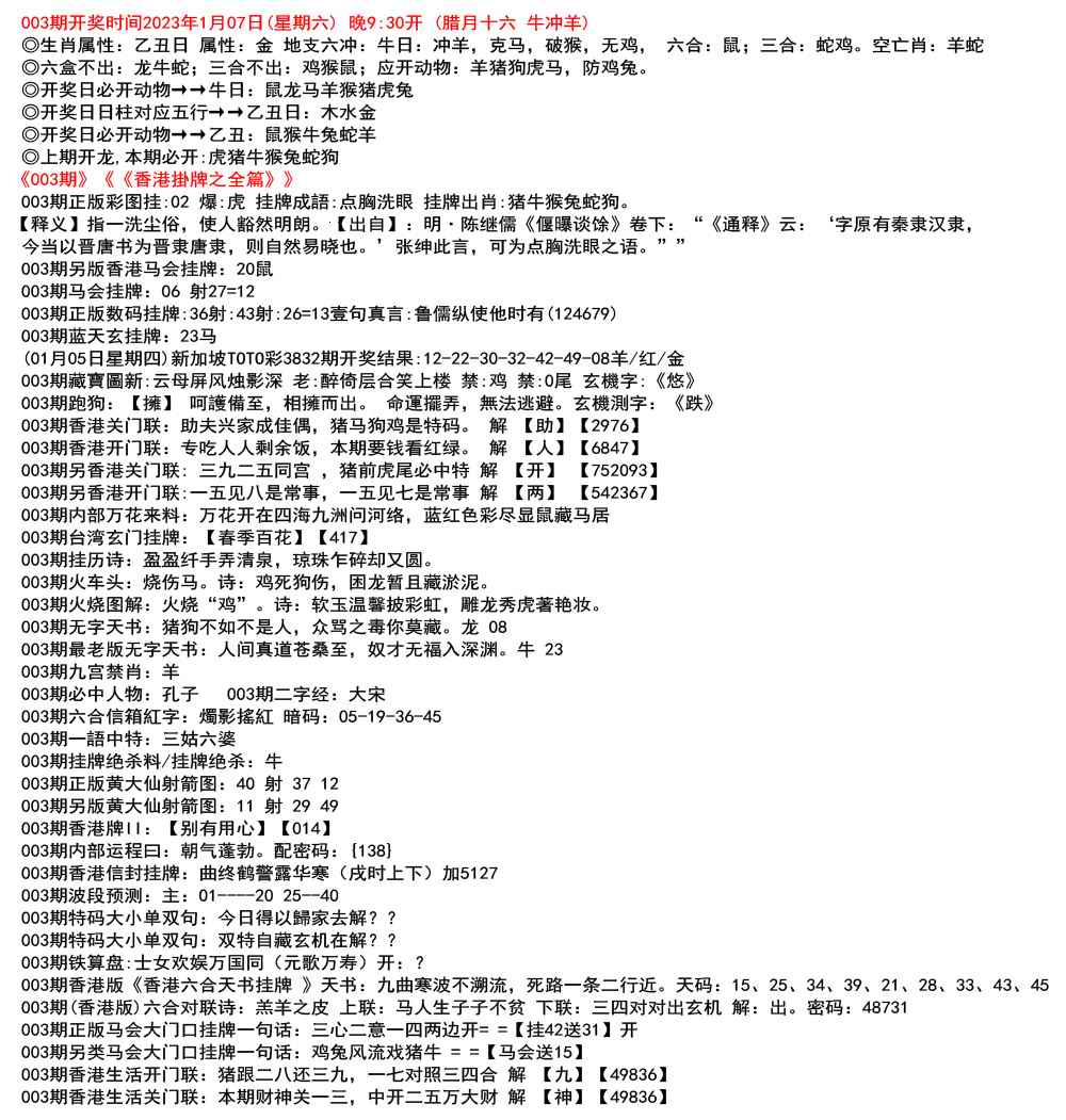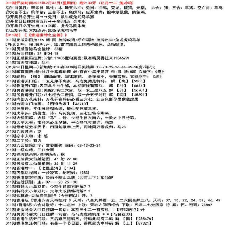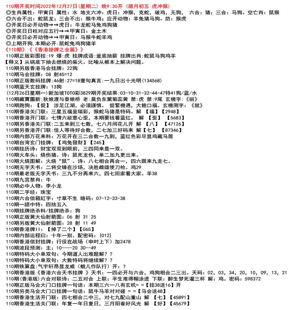 111期开奖时间2022年12月29日(星期四) 晚9:30开 (腊月初七 龙冲狗)
