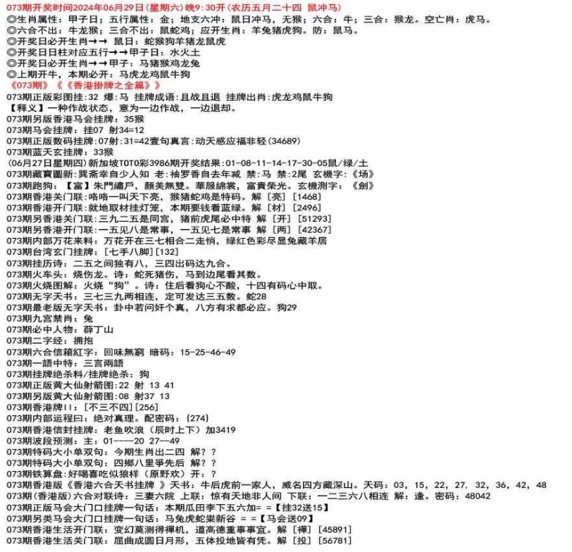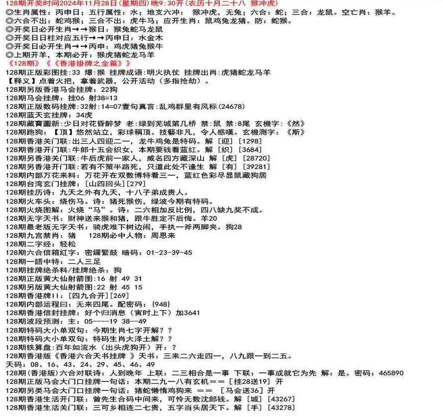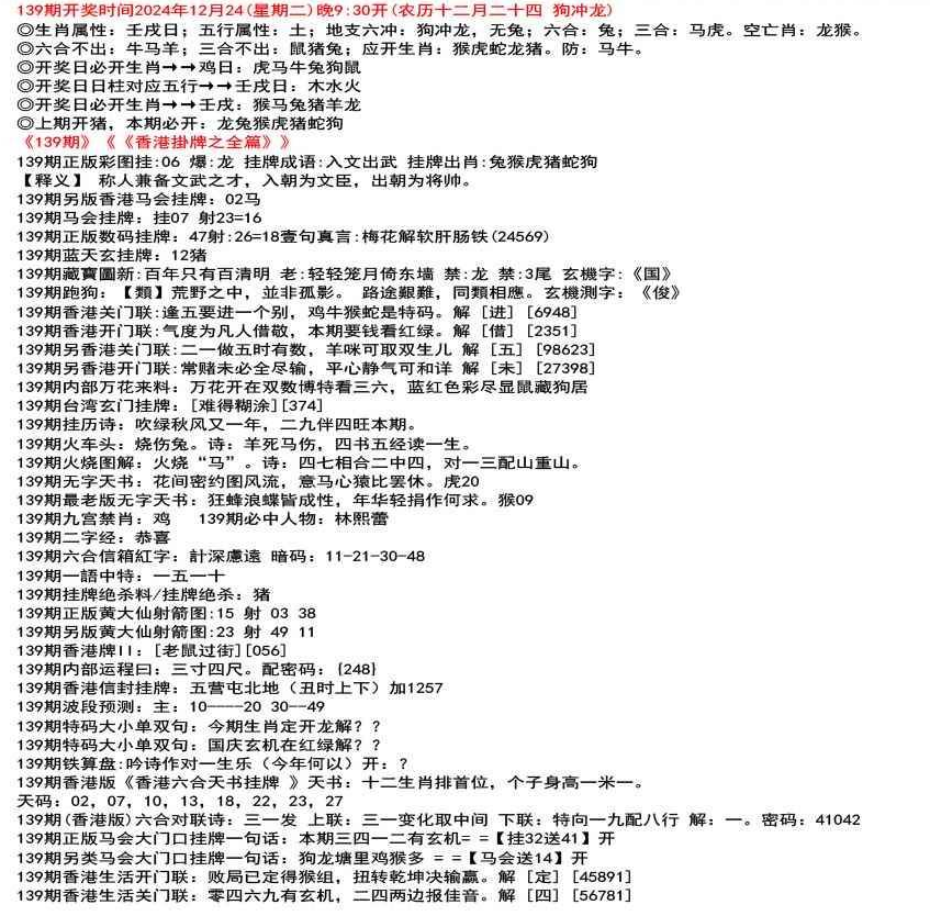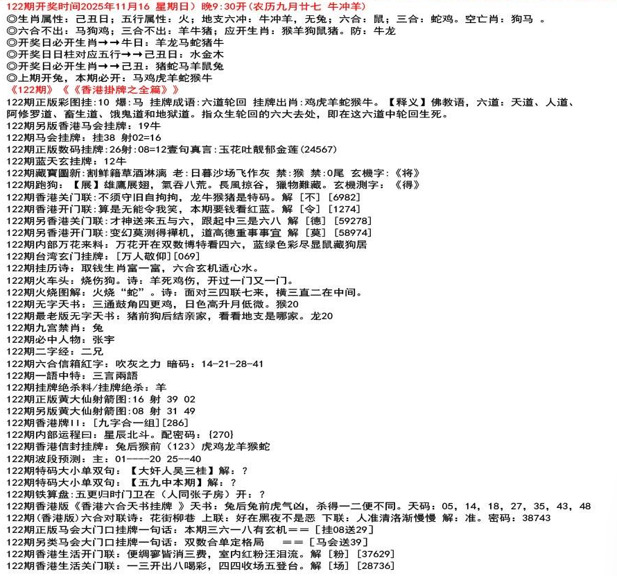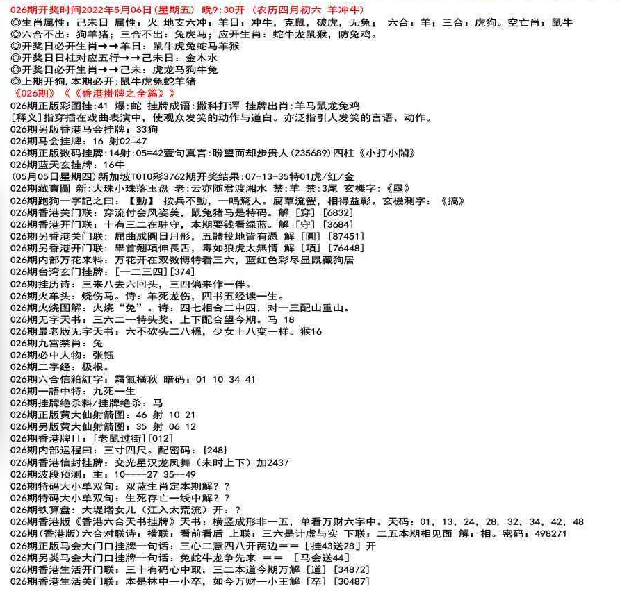 111期开奖时间2022年12月29日(星期四) 晚9:30开 (腊月初七 龙冲狗)