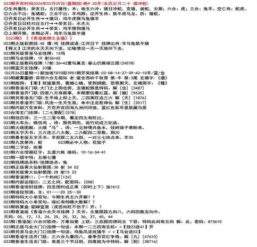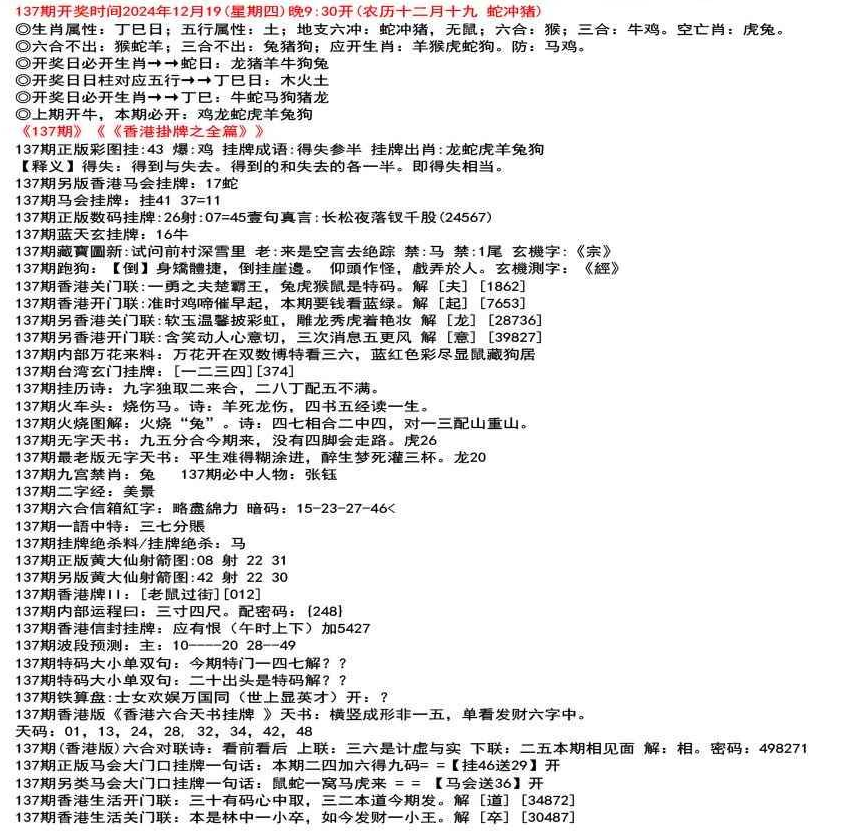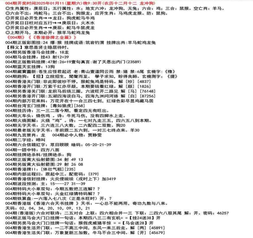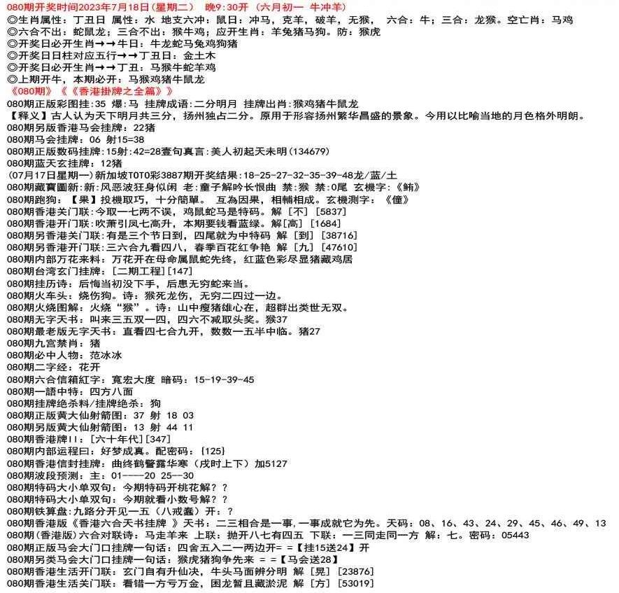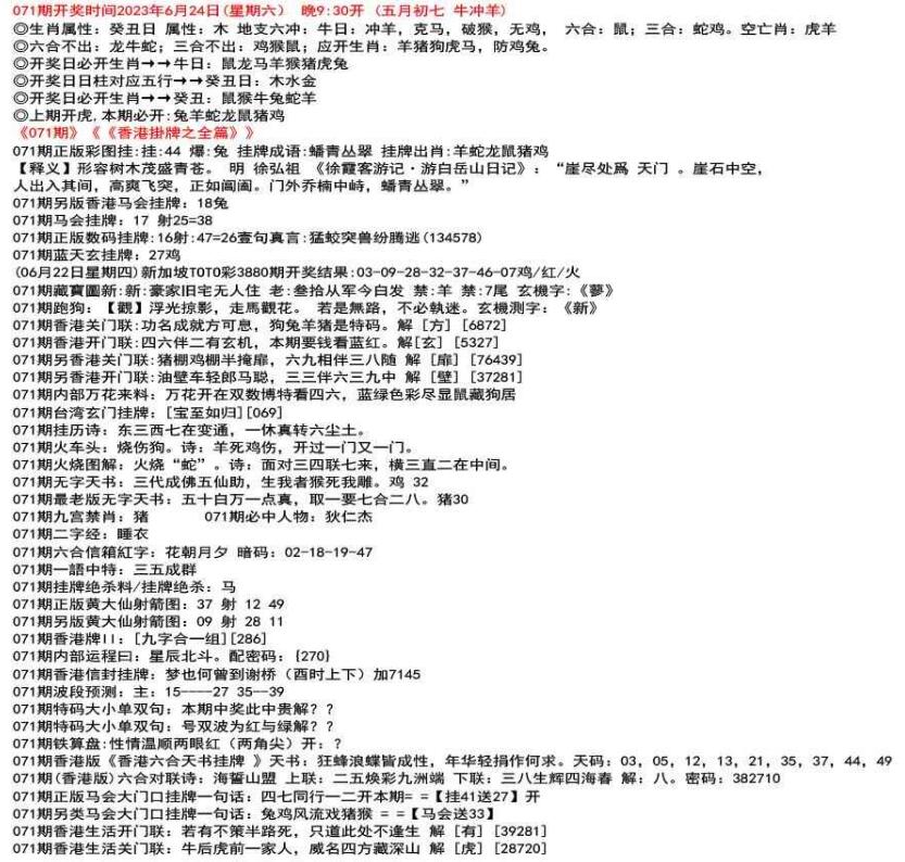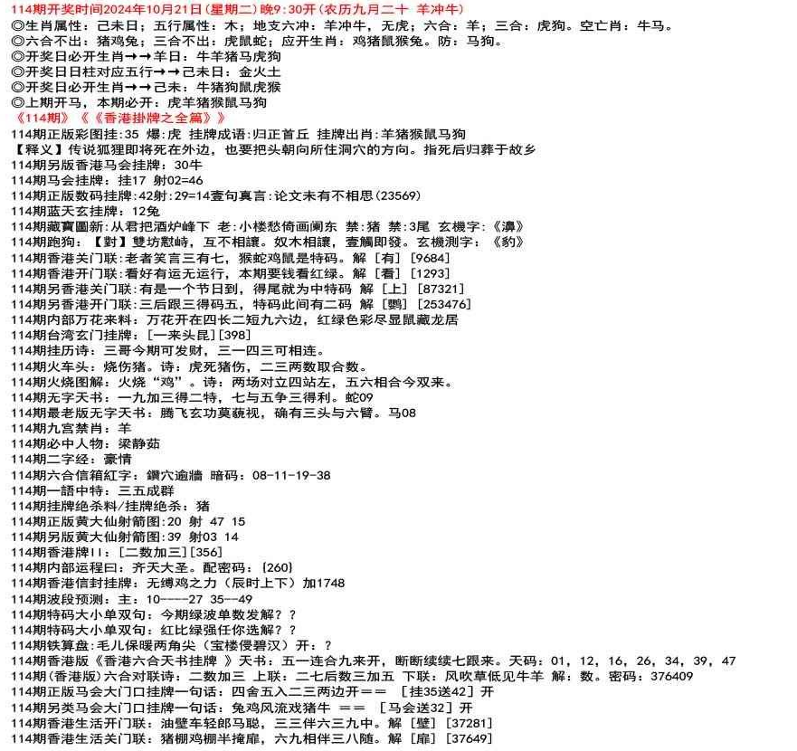 111期(香港版)六合对联诗:三三足养 上联:头在天上脚落地 下联:说是龙来假一字 解:落。密码:38729