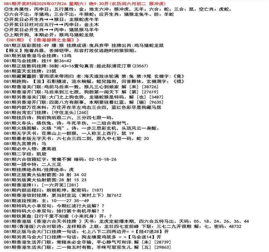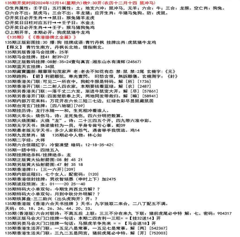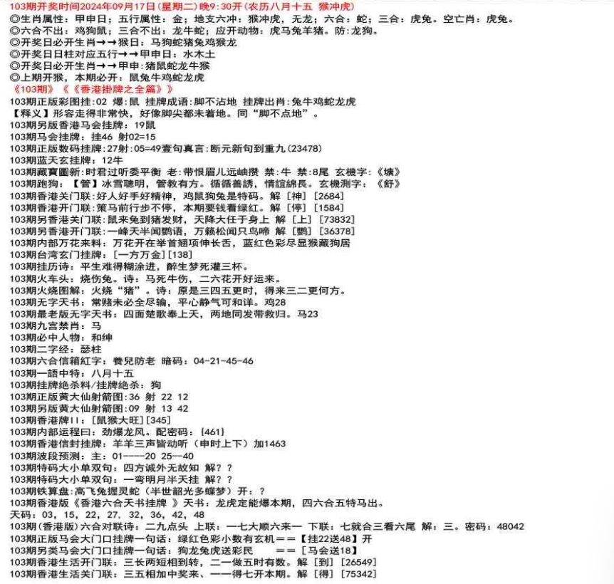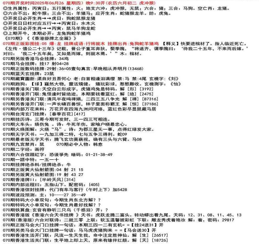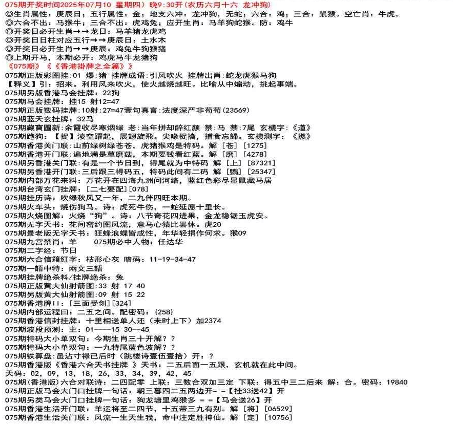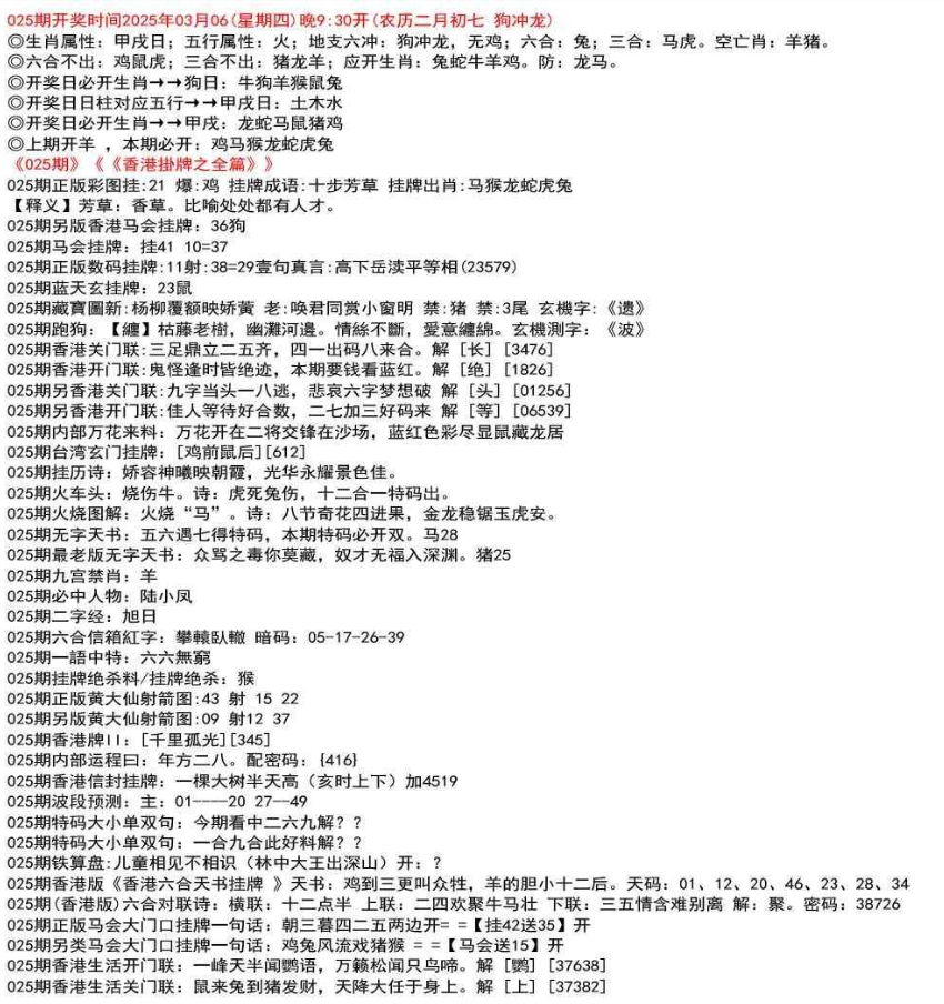 111期香港牌II:【天干之将】【179】