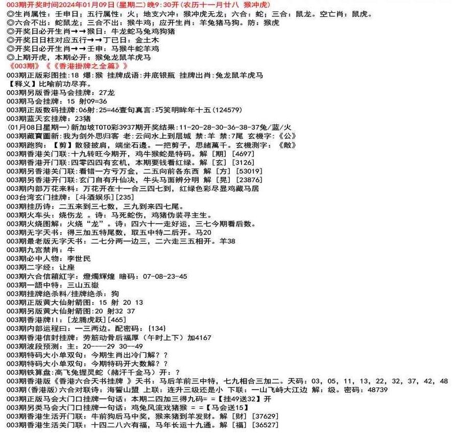 (12月26日星期一)新加坡TOTO彩3829期开奖结果:03-10-31-32-44-47特41狗/蓝/水