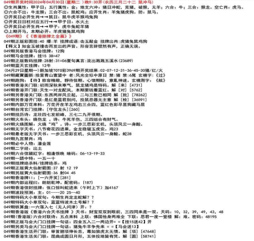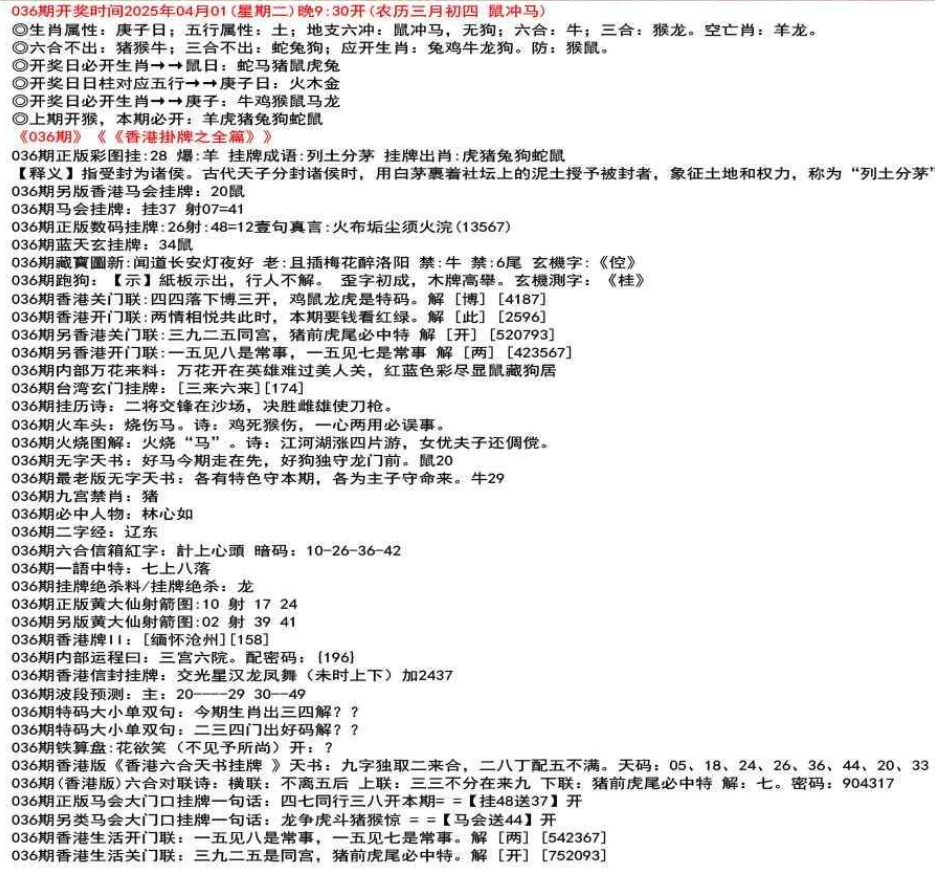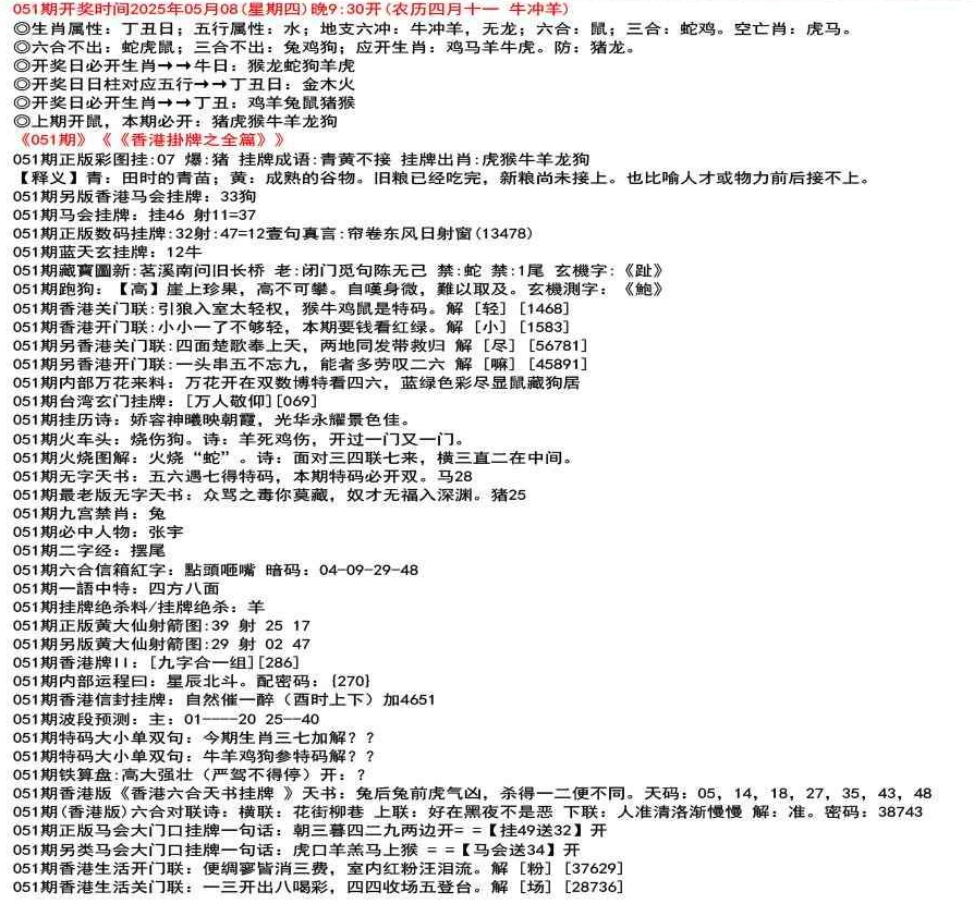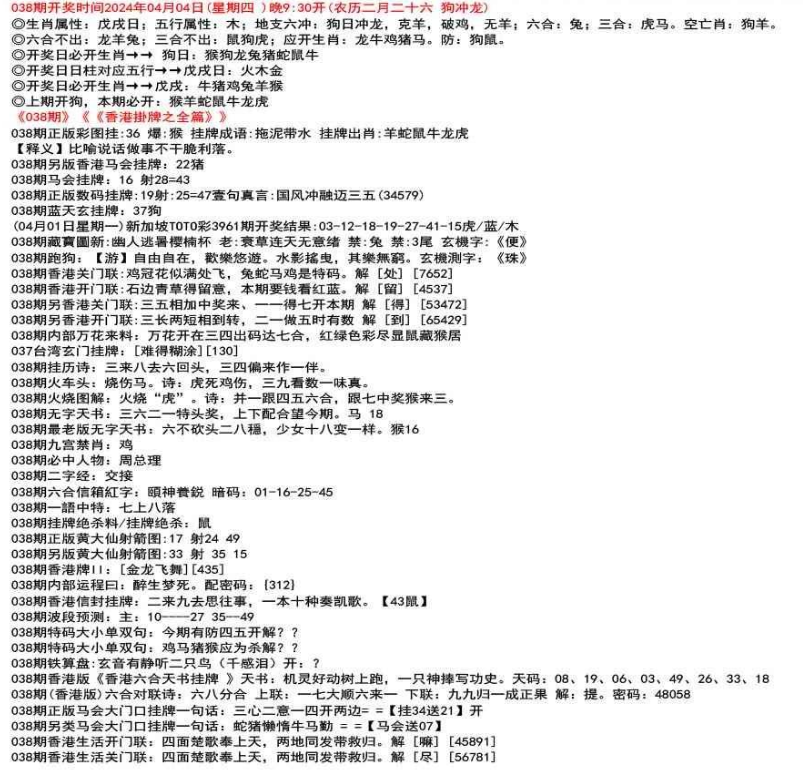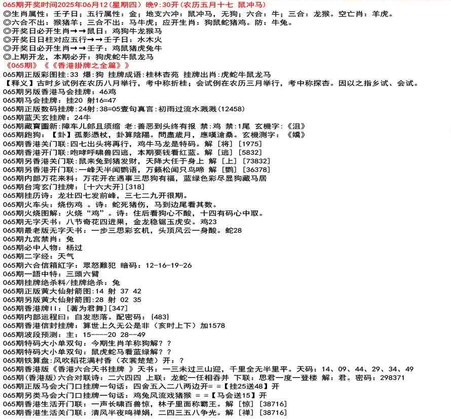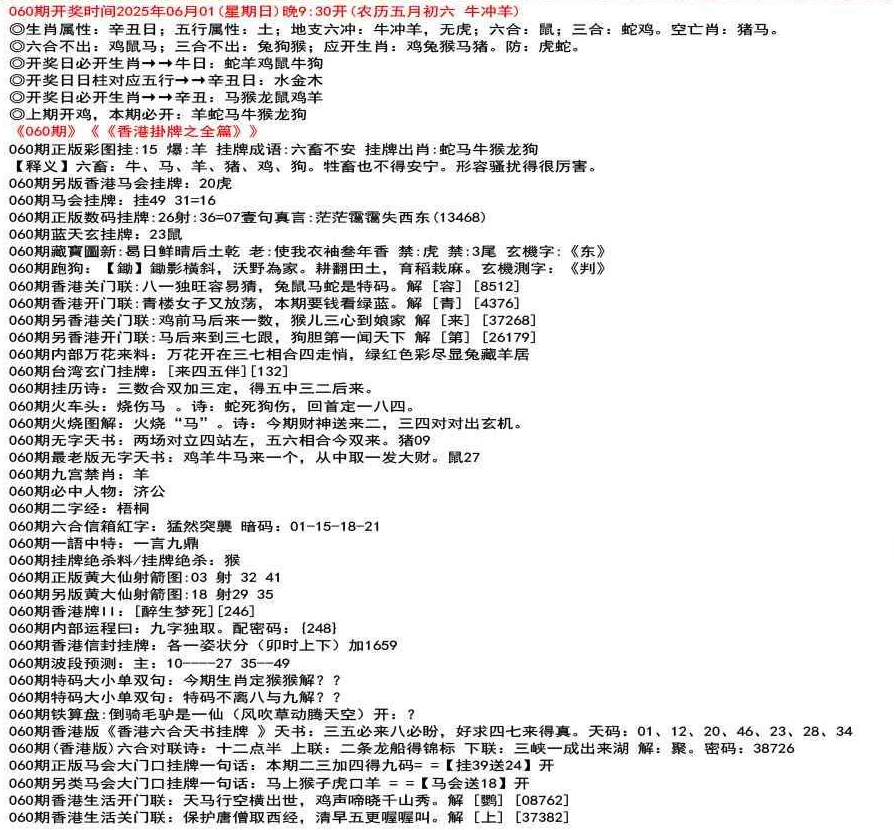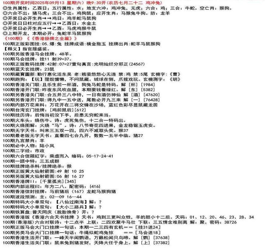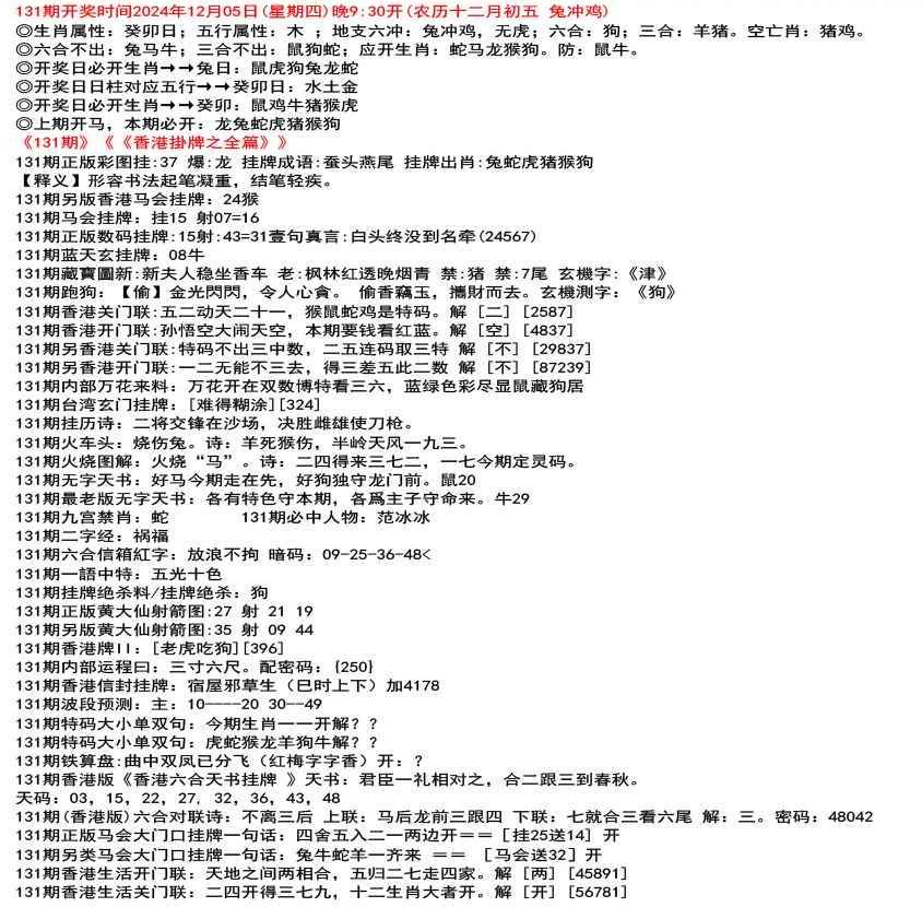 ◎六合不出:牛龙猴;三合不出:鼠蛇鸡;应开动物:羊兔猪虎狗。防:鼠马