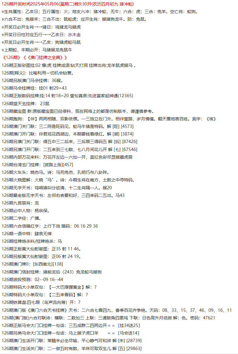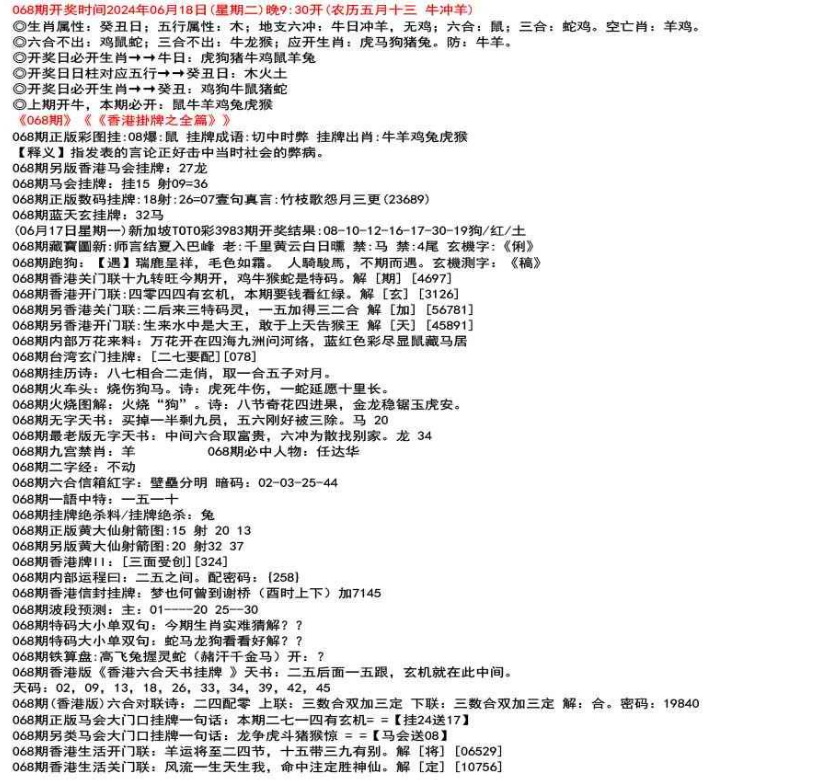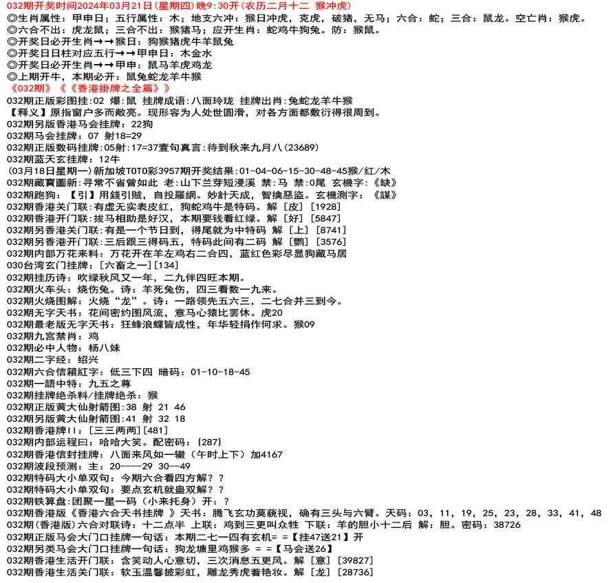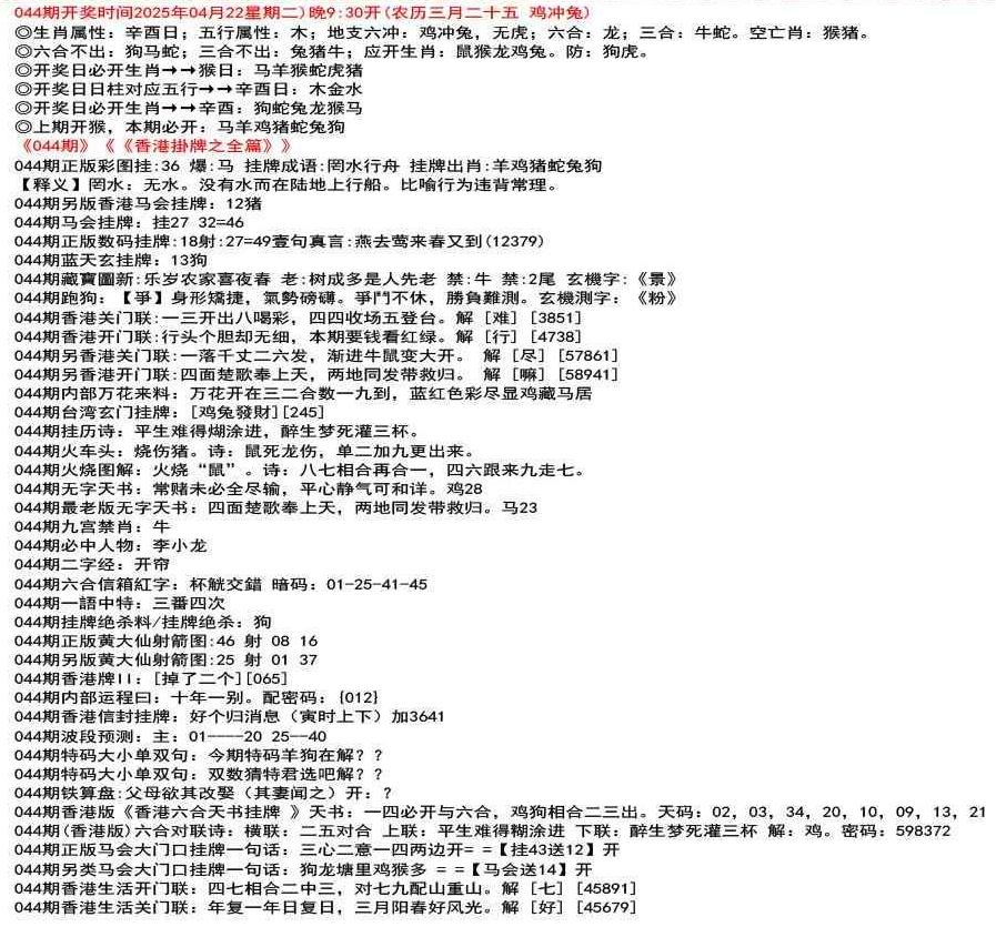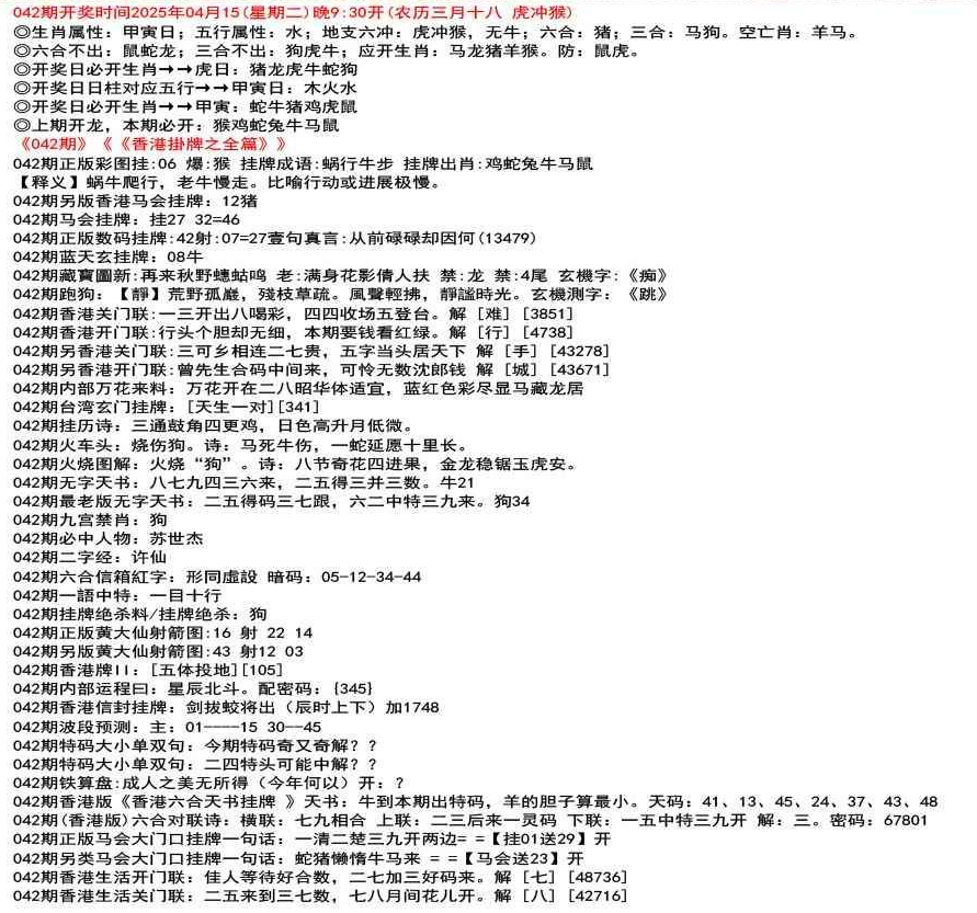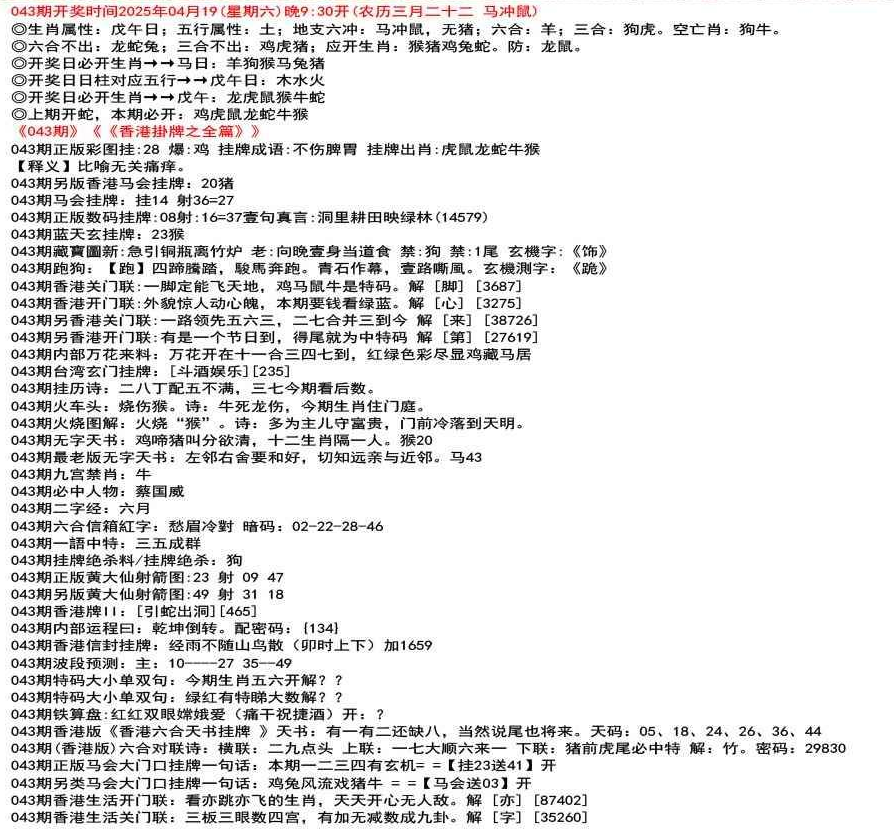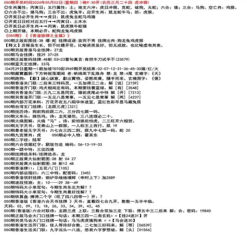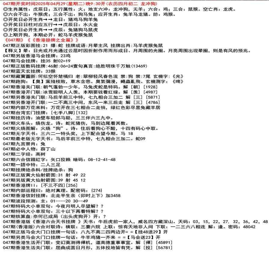 ◎六合不出:牛龙猴;三合不出:鼠蛇鸡;应开动物:羊兔猪虎狗。防:鼠马