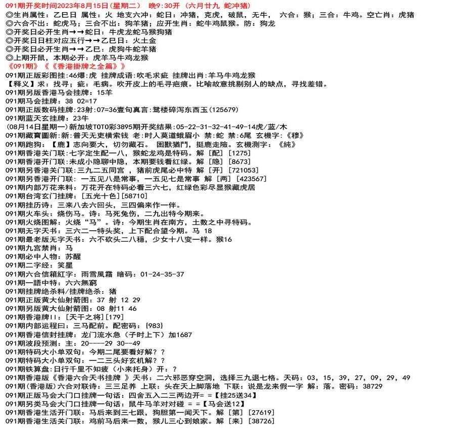 111期特码大小单双句:特码一二三门万解??